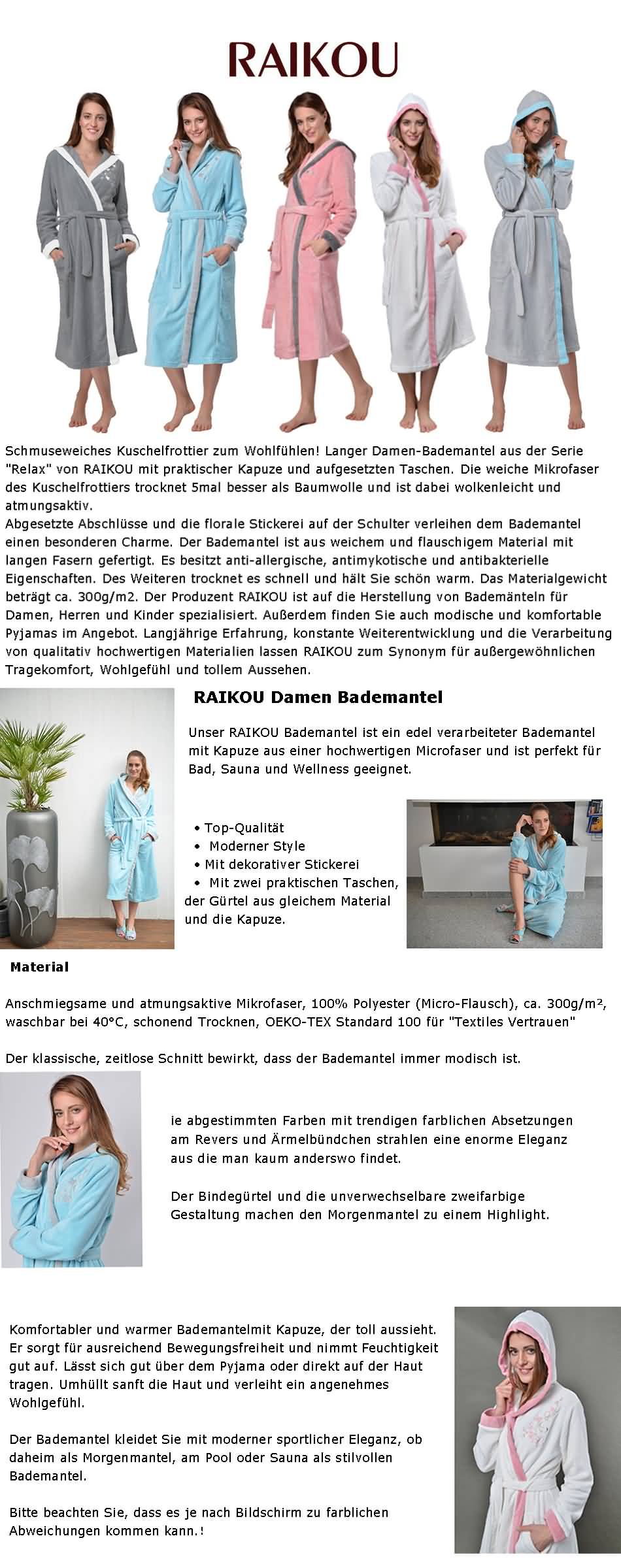 RAIKOU Damen Bademantel mit Kapuze weiches und super flauschiges Coral-Fleece Flausch RelaxKuschelfrottee Microfaser